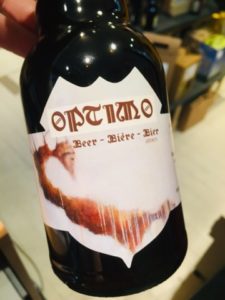 Aujourd’hui, c’est un stout que nous avons choisi, une bière noire de fermentation haute titrant à 8% vol.alc. La brasserie D’Oude Maalderij a crée une série composée de 3 bières noires : un porter (Deo), un stout (Optimo) et un impérial stout (Maximo). Le nom de cette série est DOM, en référence aux initiales du nom de la brasserie mais également des 3 bières qui la composent. Deuxième de la DOM, l’Optimo est un stout légèrement fumé. Cet arôme a été obtenu grâce à un malt tourbé de whisky au lieu d’un malt fumé habituel. L’attaque est fumée mais l’arrière goût est plus doux. On retrouve des notes de chocolats, de malt et de cerises. L’ensemble est bien équilibré !