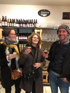 L’étiquette nous fait sourire et rappelle le nom de la bière : un éléphant dansant la trompe en l’air et entouré de trois comparses, peut être les trois fondateurs de la brasserie !