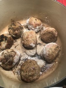 Dans une grande casserole, dorer les boulettes dans du beurre.